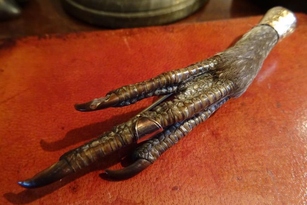 - For a steampunk ensemble, a grouse claw pin would make an unusual focal point. Perhaps on a coat, hat or bag.